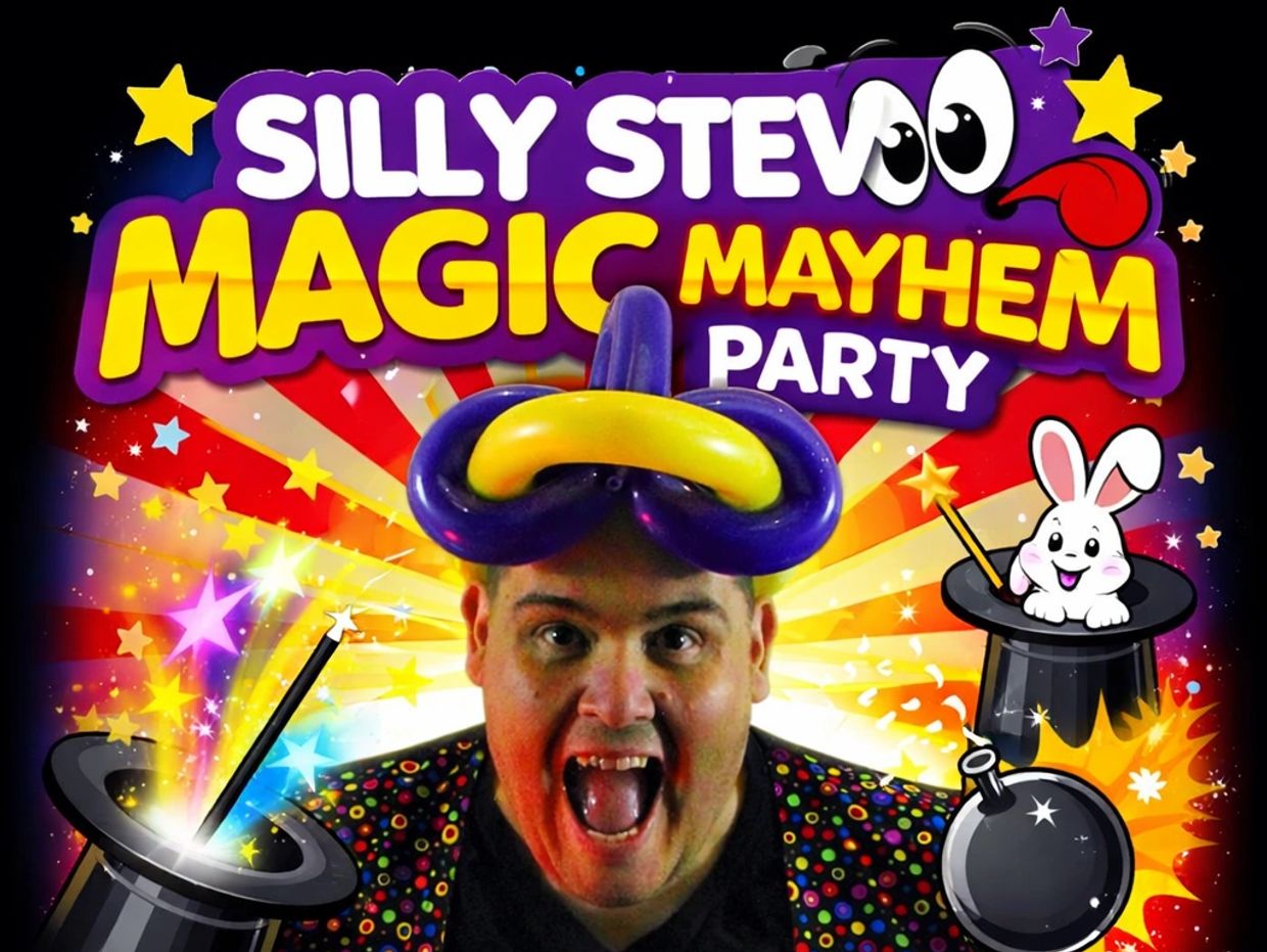 Get ready for an awesome 2-hour Magic and Mayhem party with your hilarious party host, Silly Steve! This high-energy children’s party is packed with laughter, surprises, and non-stop fun from start to finish.